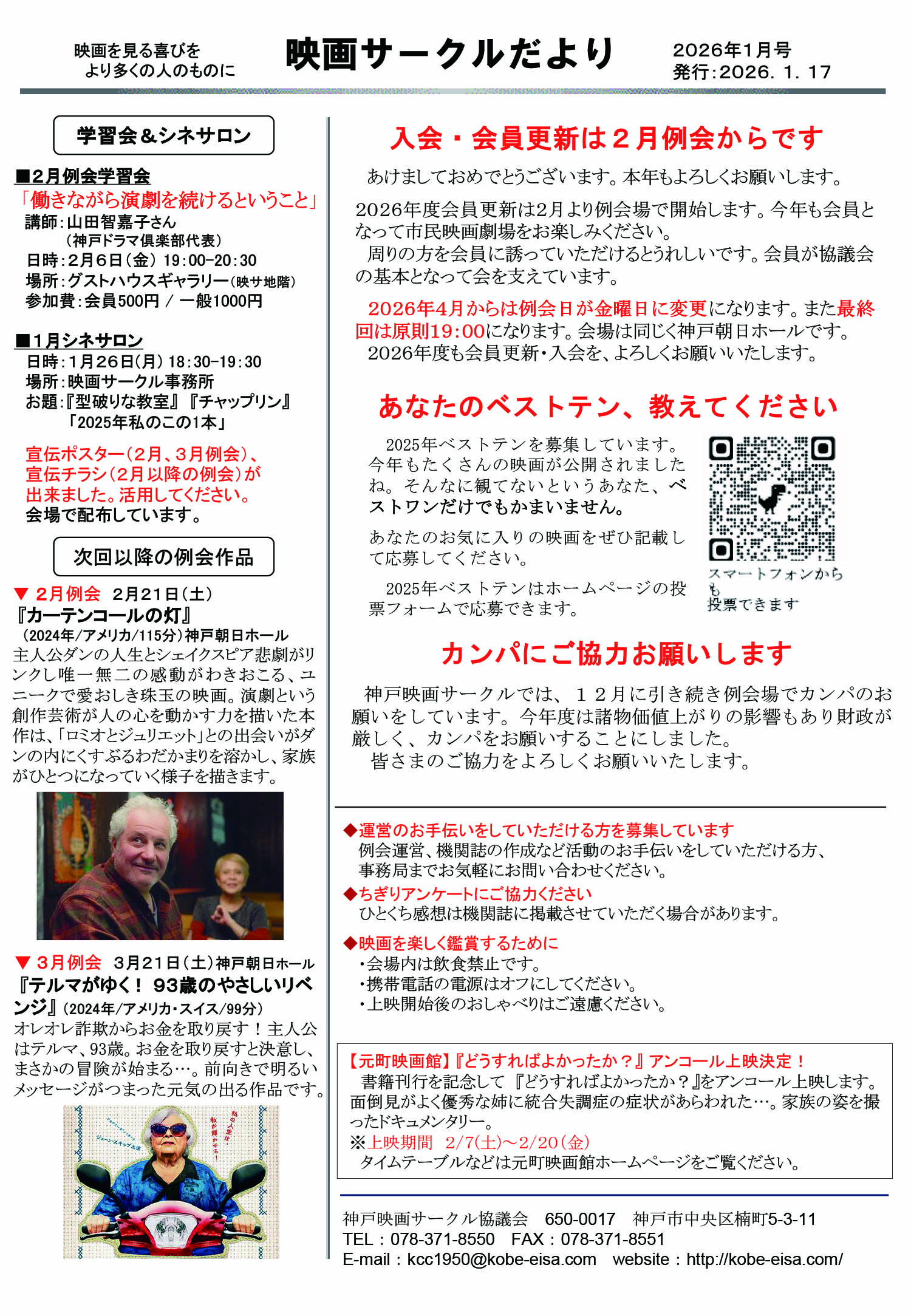 「映サだより」は例会場で配布している資料です (更新は次回の例会日(1/17)